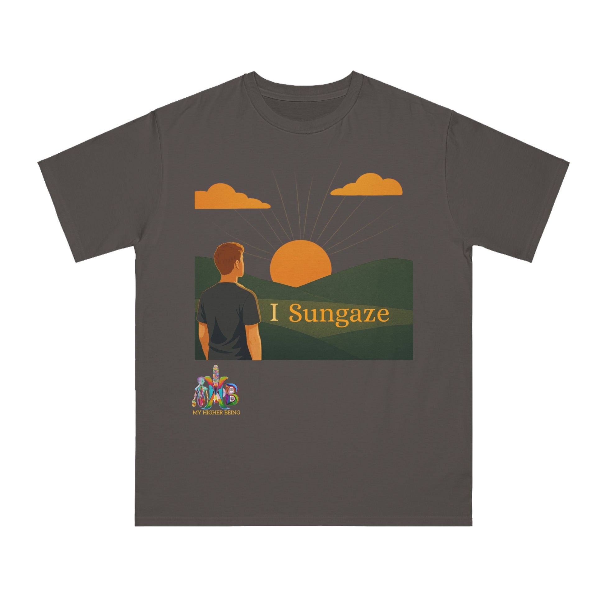 This T-Shirt is made from 100% certified organic cotton, providing a warm and flexible fit perfect for daily wear. At My Higher Being, we believe in the transformative power of daily habits. The 'I Sungaze' Tee' is a reminder to embrace the benefits of sun gazing, a practice that can significantly enhance your health and wellness journey. This T-Shirt promotes better sleep, mood regulation, and overall health by incorporating the habit of sun gazing into your daily routine. It inspires a deeper connection with nature, making it perfect for men looking to improve their well-being. Ideal for those interested in holistic health practices and sustainable fashion.