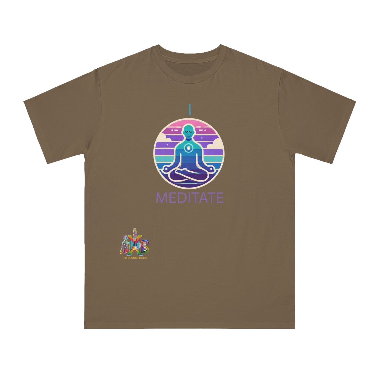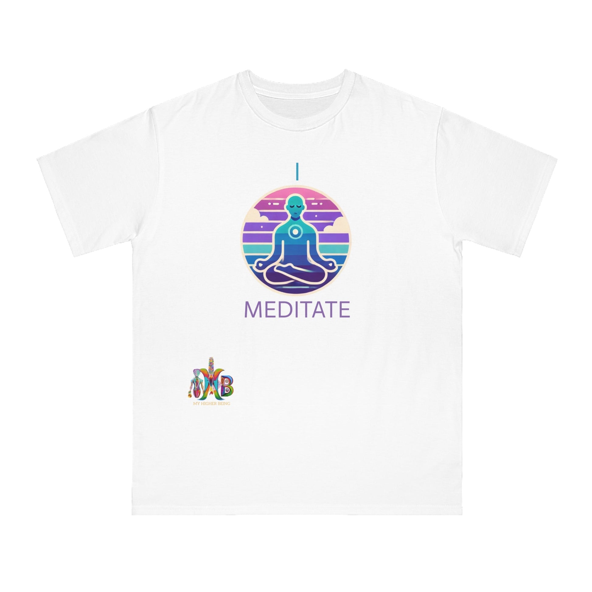 This T-Shirt is made from 100% certified organic cotton, providing a warm and flexible fit perfect for daily wear. At My Higher Being, we believe in the transformative power of daily habits. This tee is a reminder to incorporate daily meditation and promotes mental well-being, focus, creativity, problem-solving, emotional regulation and stronger relationships. Perfect for meditation enthusiasts and those seeking a mindful lifestyle.