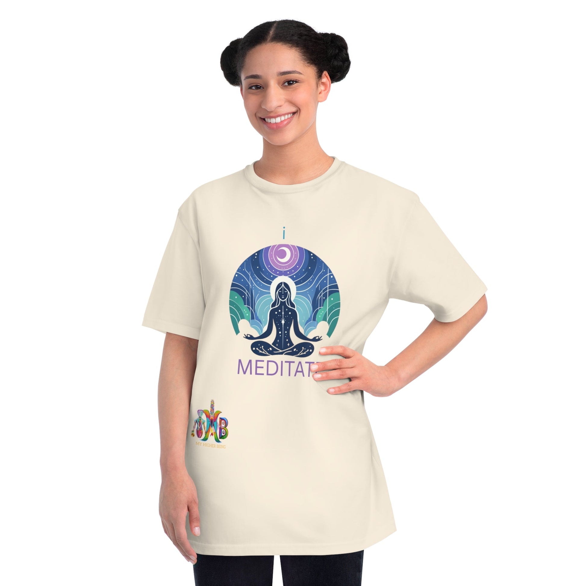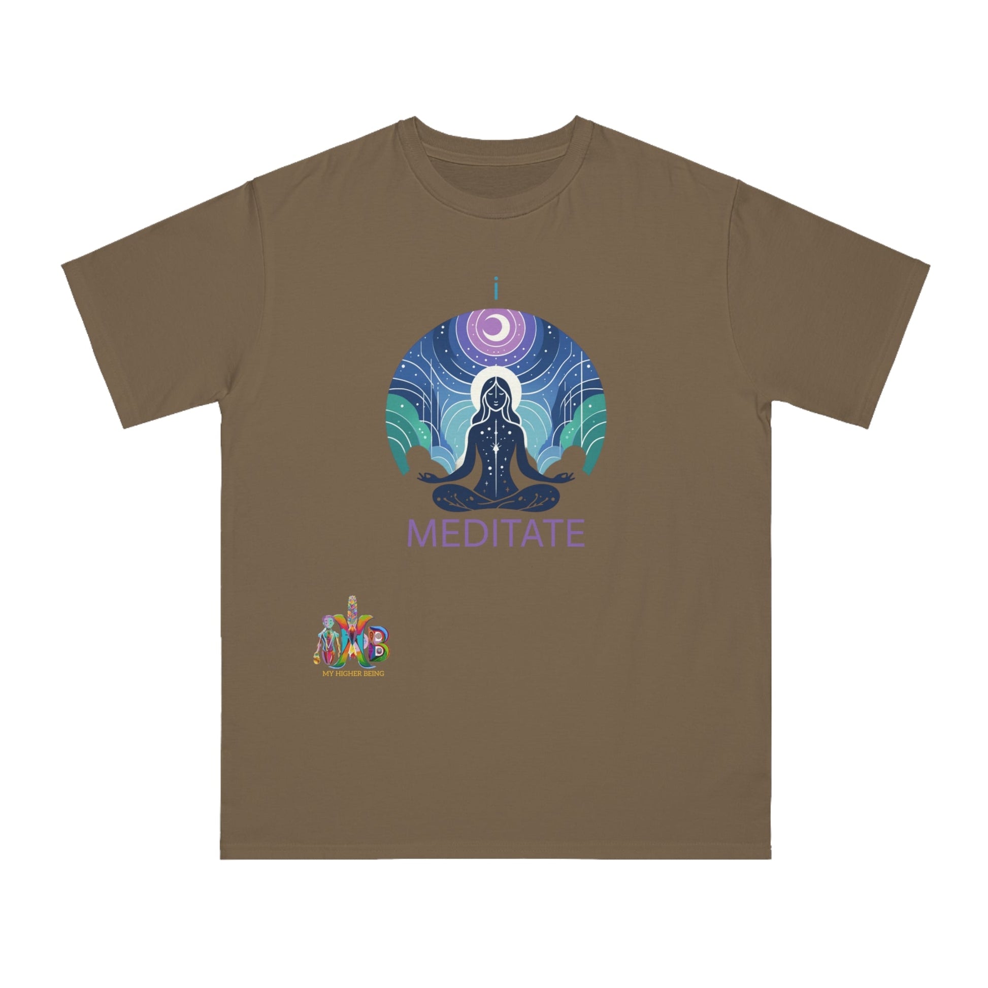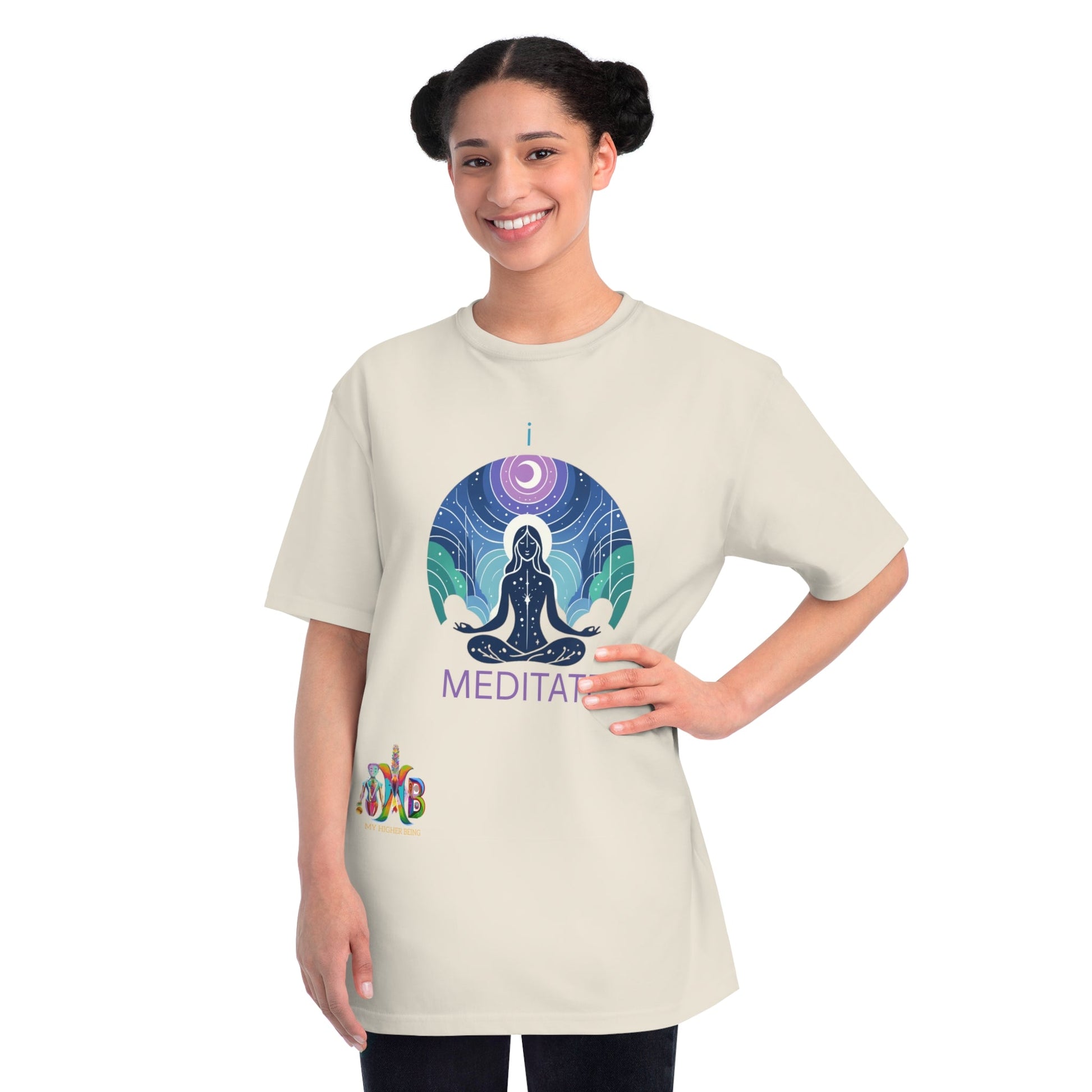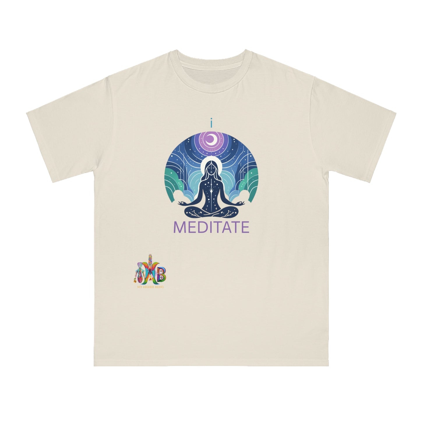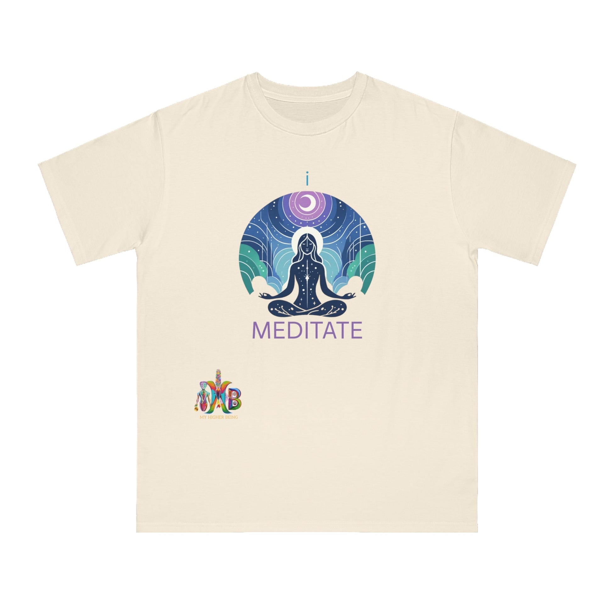 This T-Shirt is made from 100% certified organic cotton, providing a warm and flexible fit perfect for daily wear. At My Higher Being, we believe in the transformative power of daily habits. This tee is a reminder to incorporate daily meditation and promotes mental well-being, focus, creativity, problem-solving, emotional regulation and stronger relationships. Perfect for meditation enthusiasts and those seeking a mindful lifestyle.