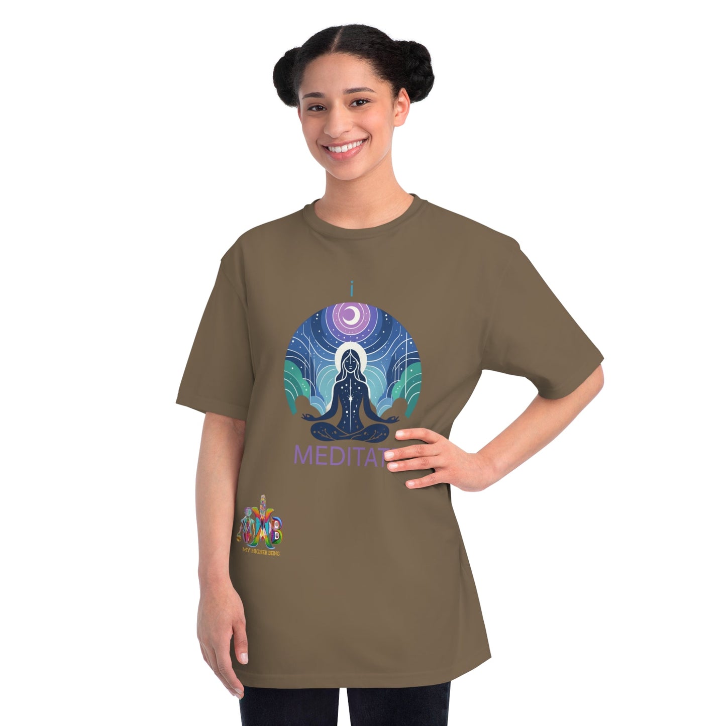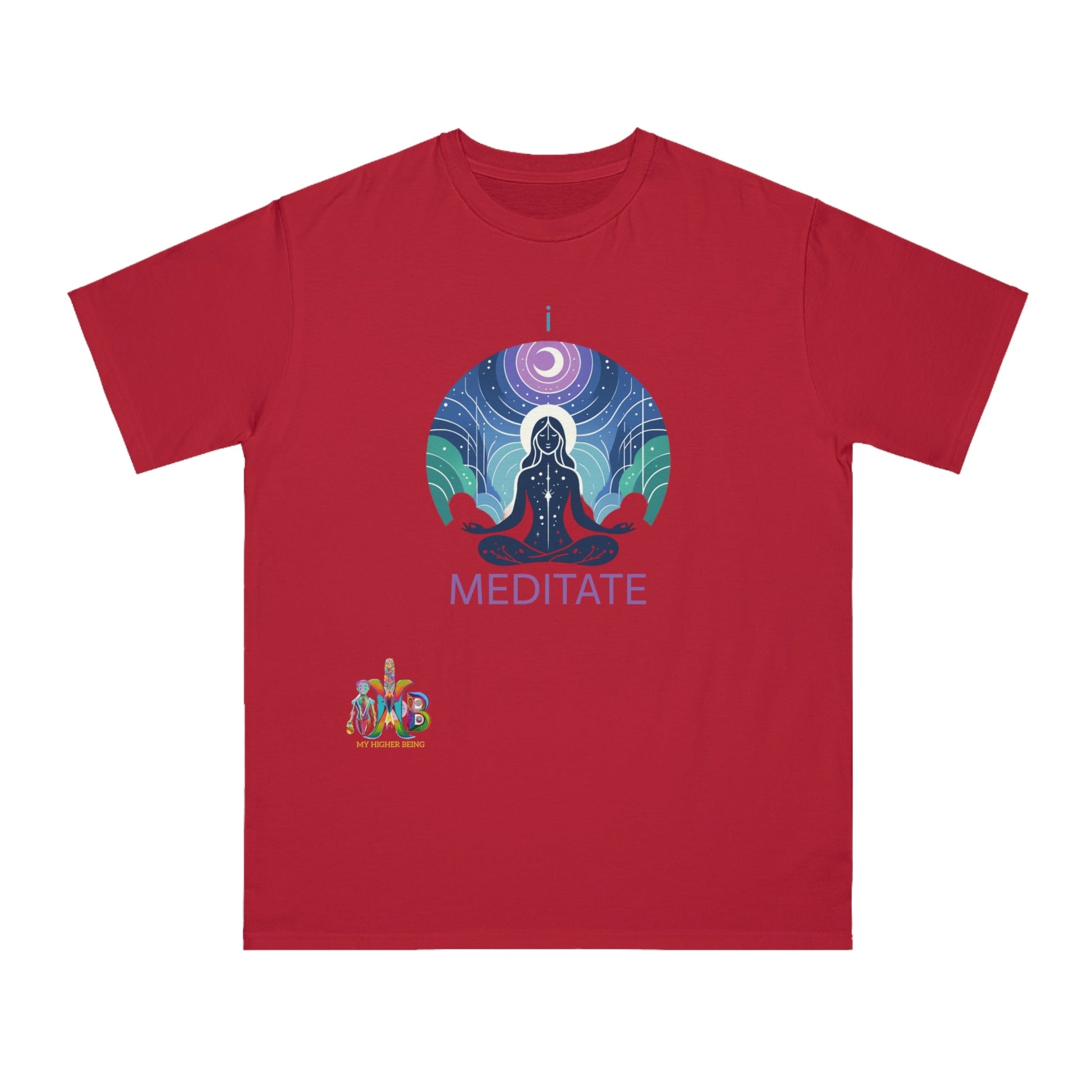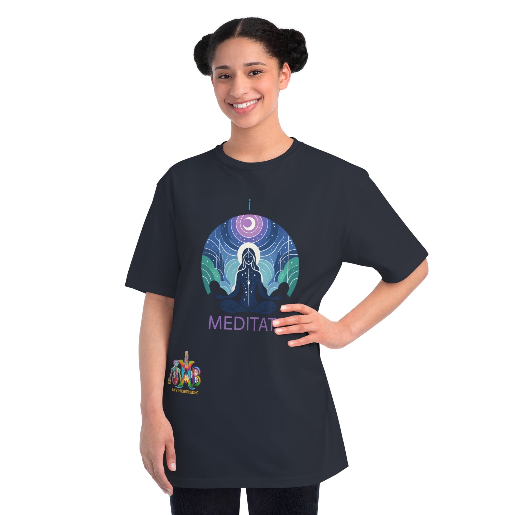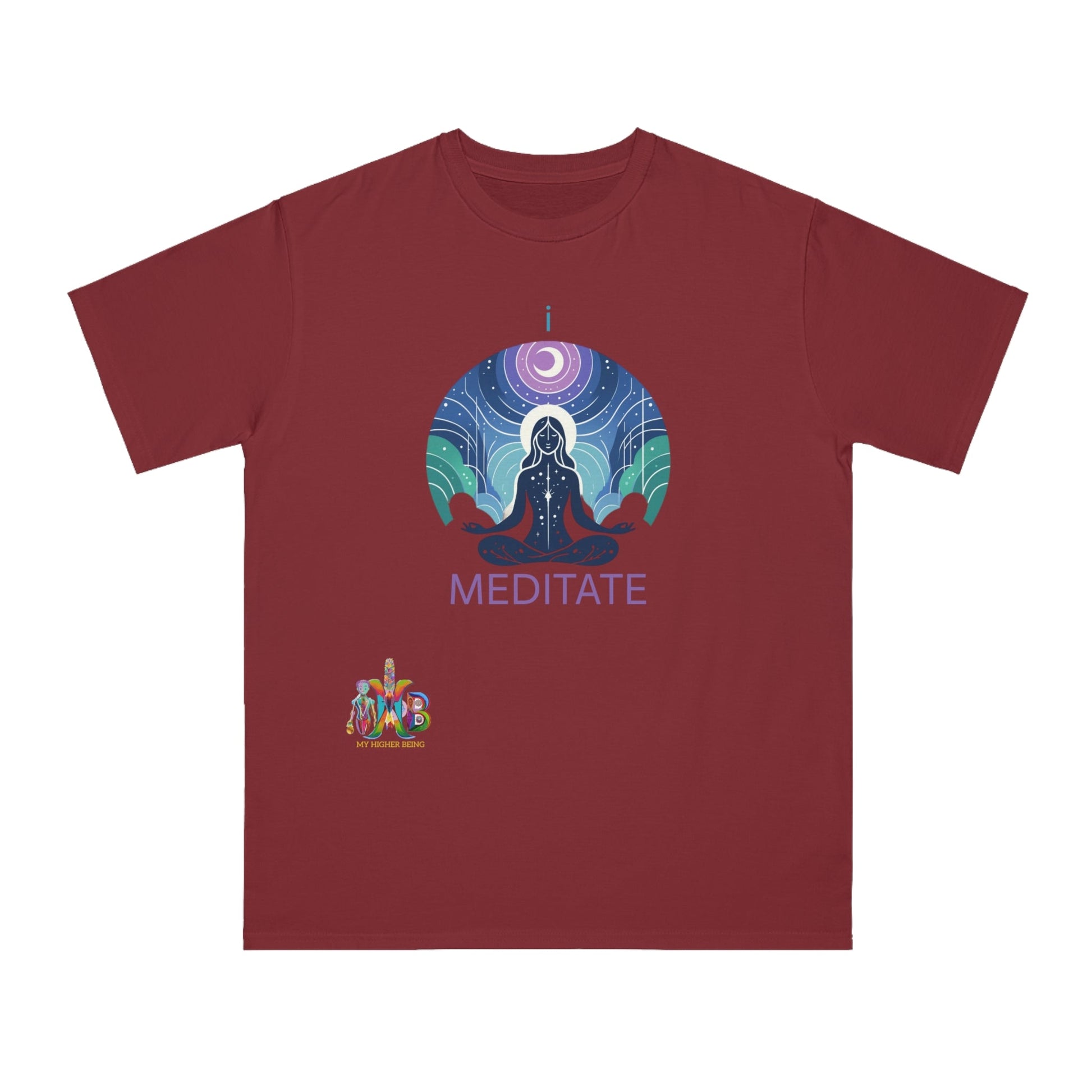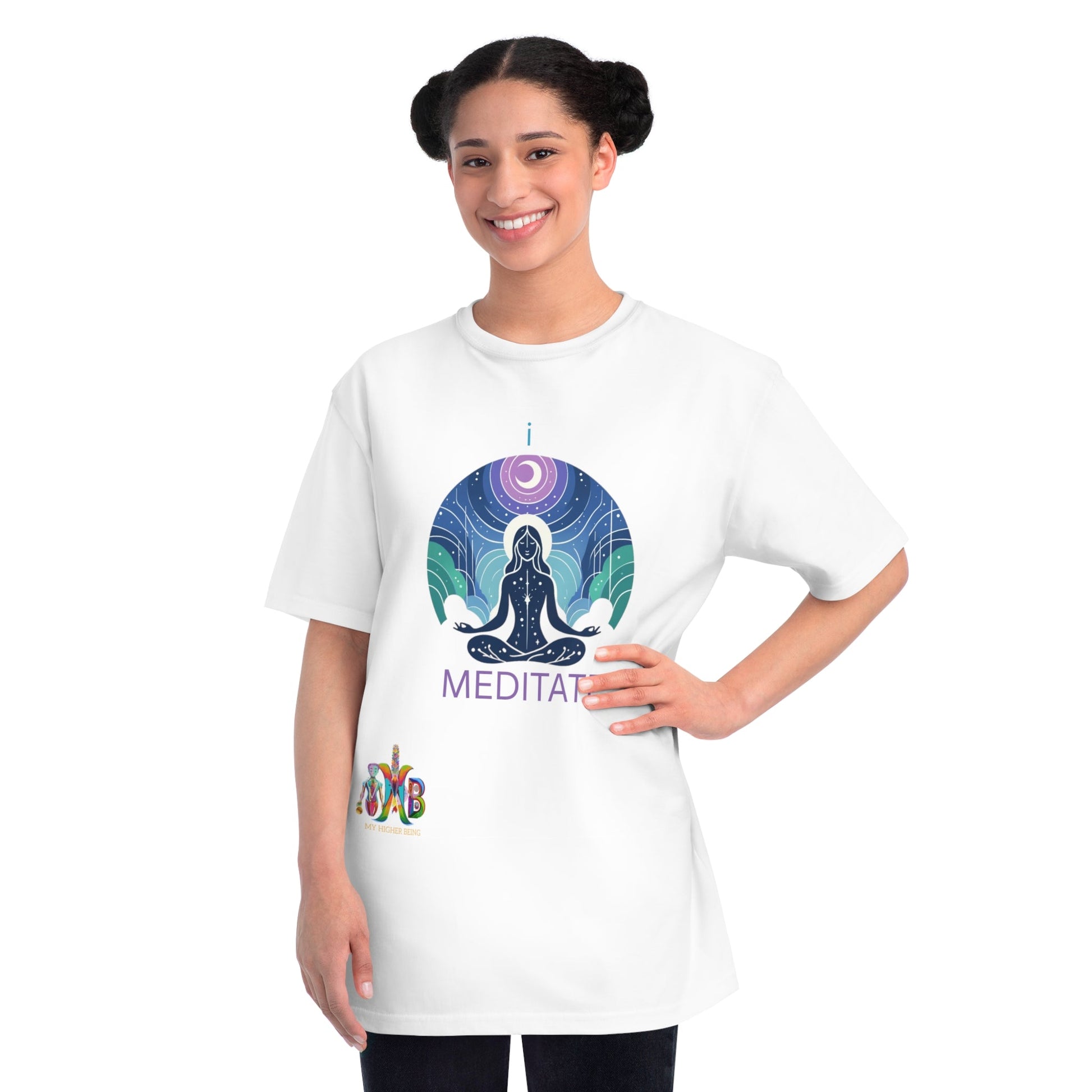 This T-Shirt is made from 100% certified organic cotton, providing a warm and flexible fit perfect for daily wear. At My Higher Being, we believe in the transformative power of daily habits. This tee is a reminder to incorporate daily meditation and promotes mental well-being, focus, creativity, problem-solving, emotional regulation and stronger relationships. Perfect for meditation enthusiasts and those seeking a mindful lifestyle.