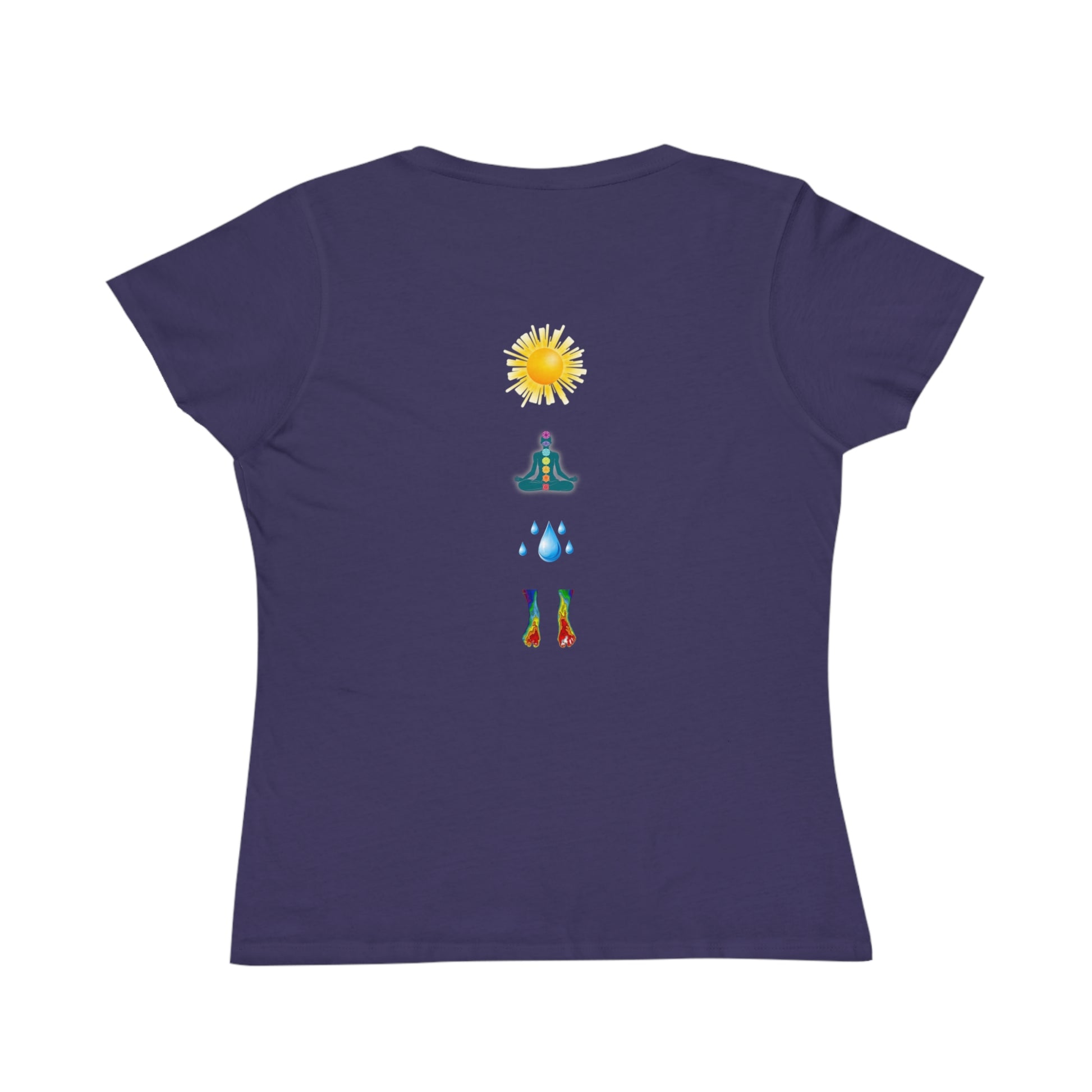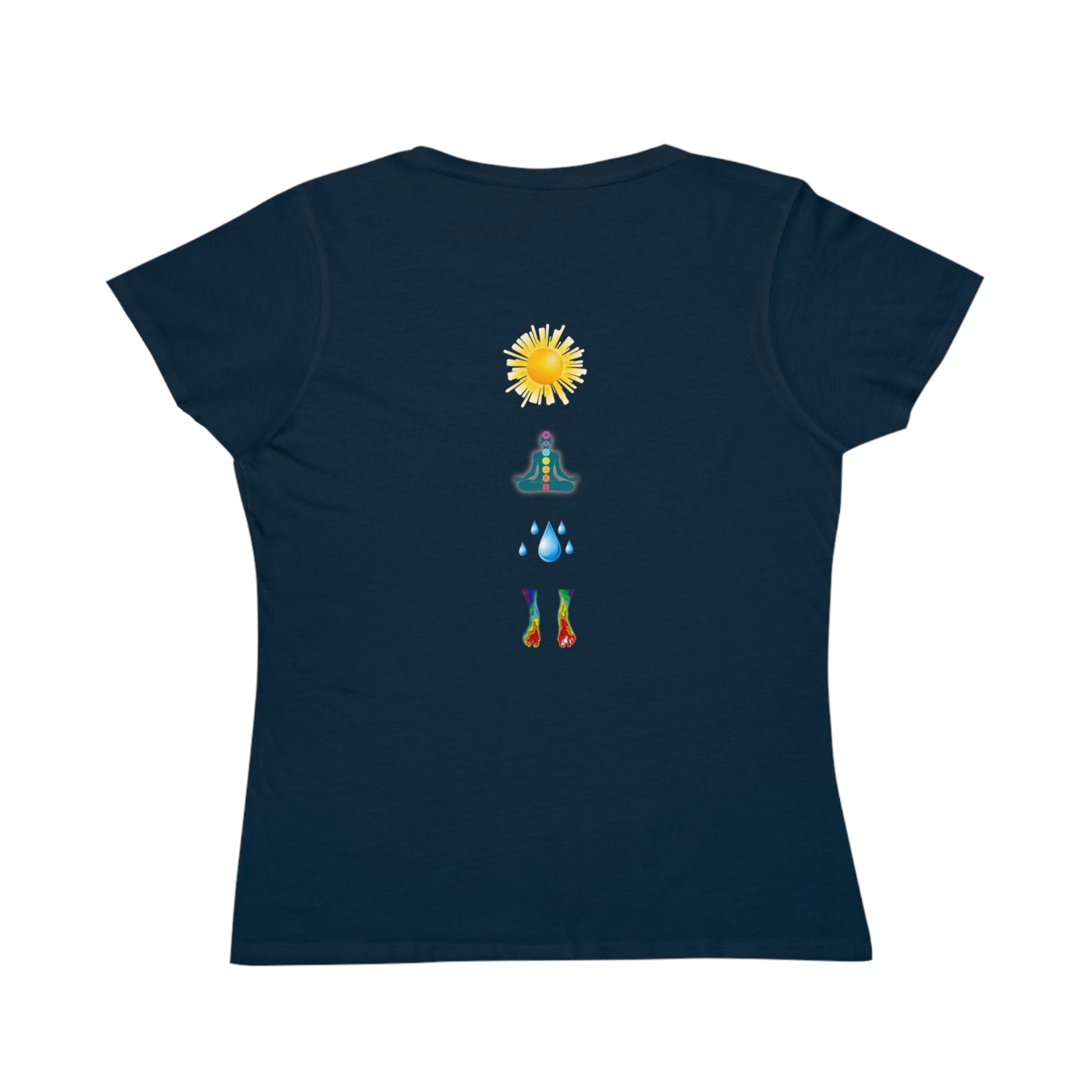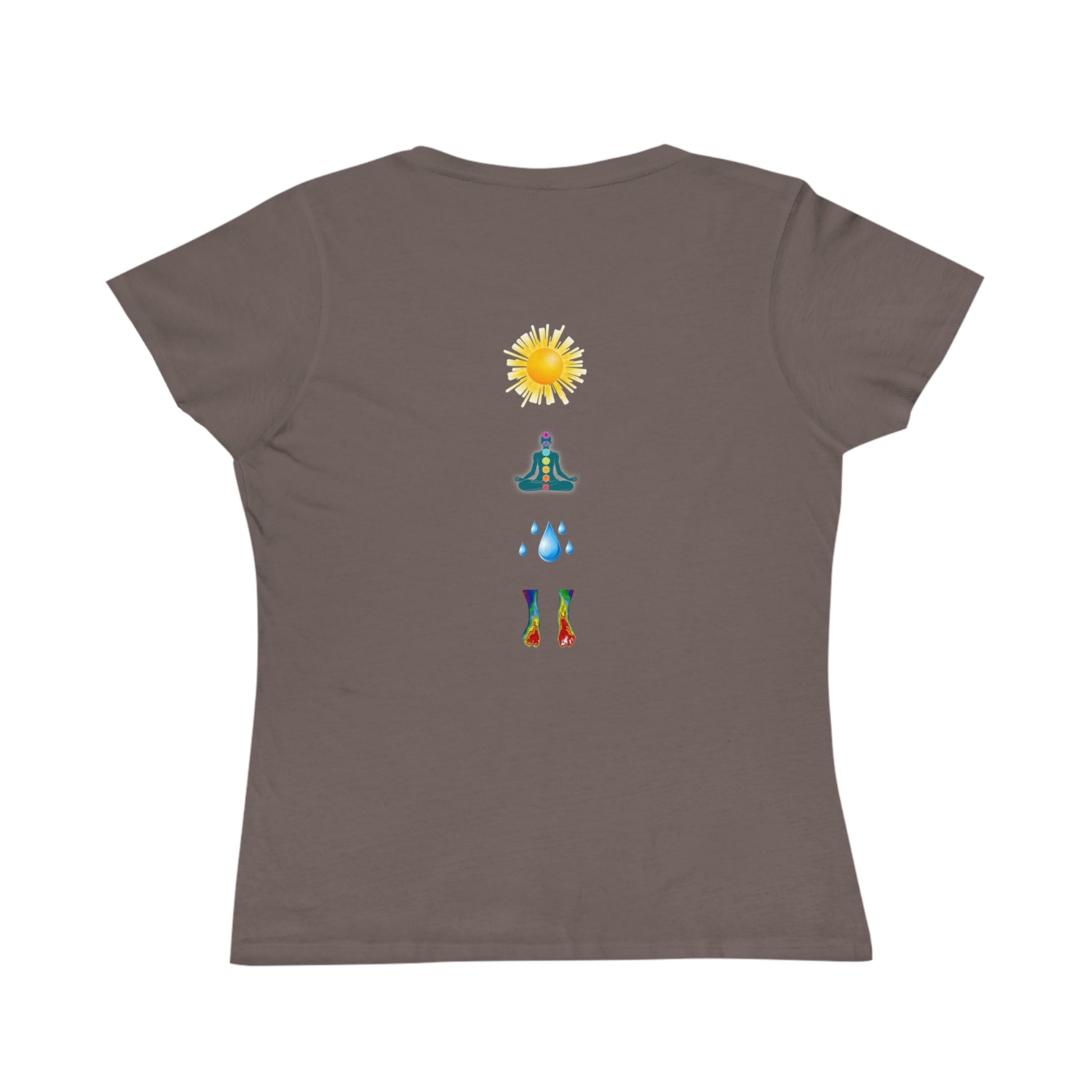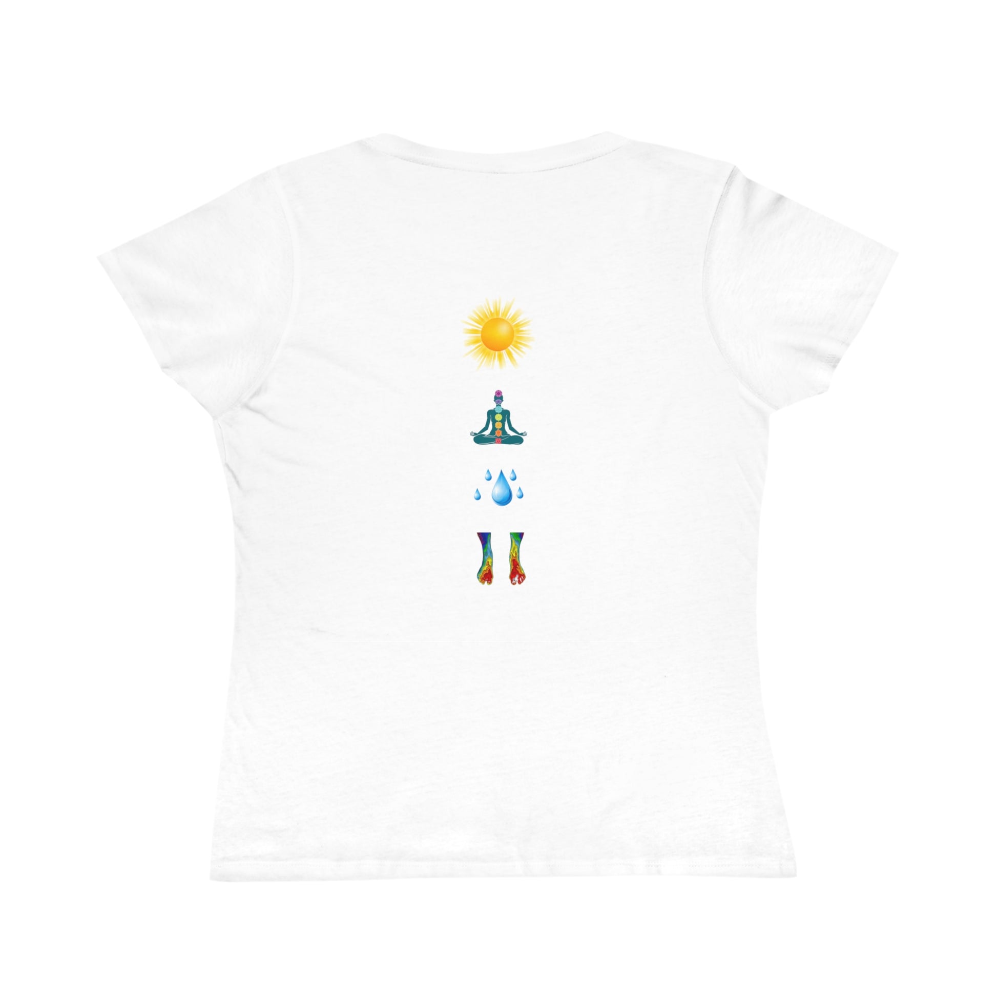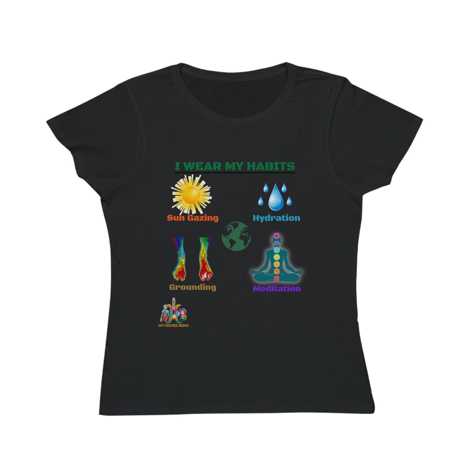 Made with 100% certified organic, ring-spun cotton, these personalized women’s t-shirts deliver both comfort and style. At My Higher Being, we believe in the transformative power of daily habits. This tee symbolizes a commitment to natural, powerful habits that enhance overall well-being. It gives off a positive and motivational vibe, inspiring the wearer to incorporate habits like sun gazing, hydration, grounding, and meditating into their daily routine. Perfect for individuals interested in holistic wellness and personal development. Ideal for wearing on wellness retreats, yoga sessions, or during meditation practices. Featuring an organic cotton neck rib (1x1), and with the entire shoulder seam being finished with self-fabric, this tee is a bliss to wear. These women’s tees go through enzyme washing; a special treatment that further softens the fabric.