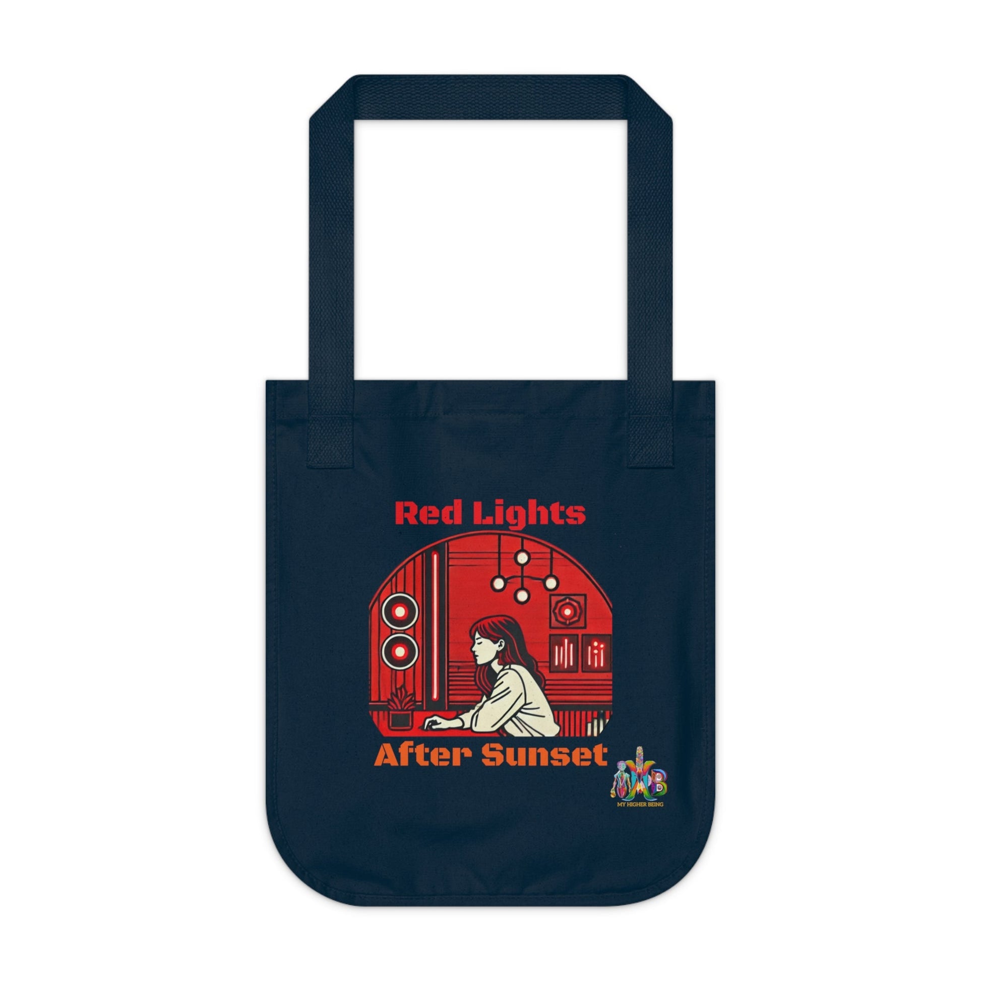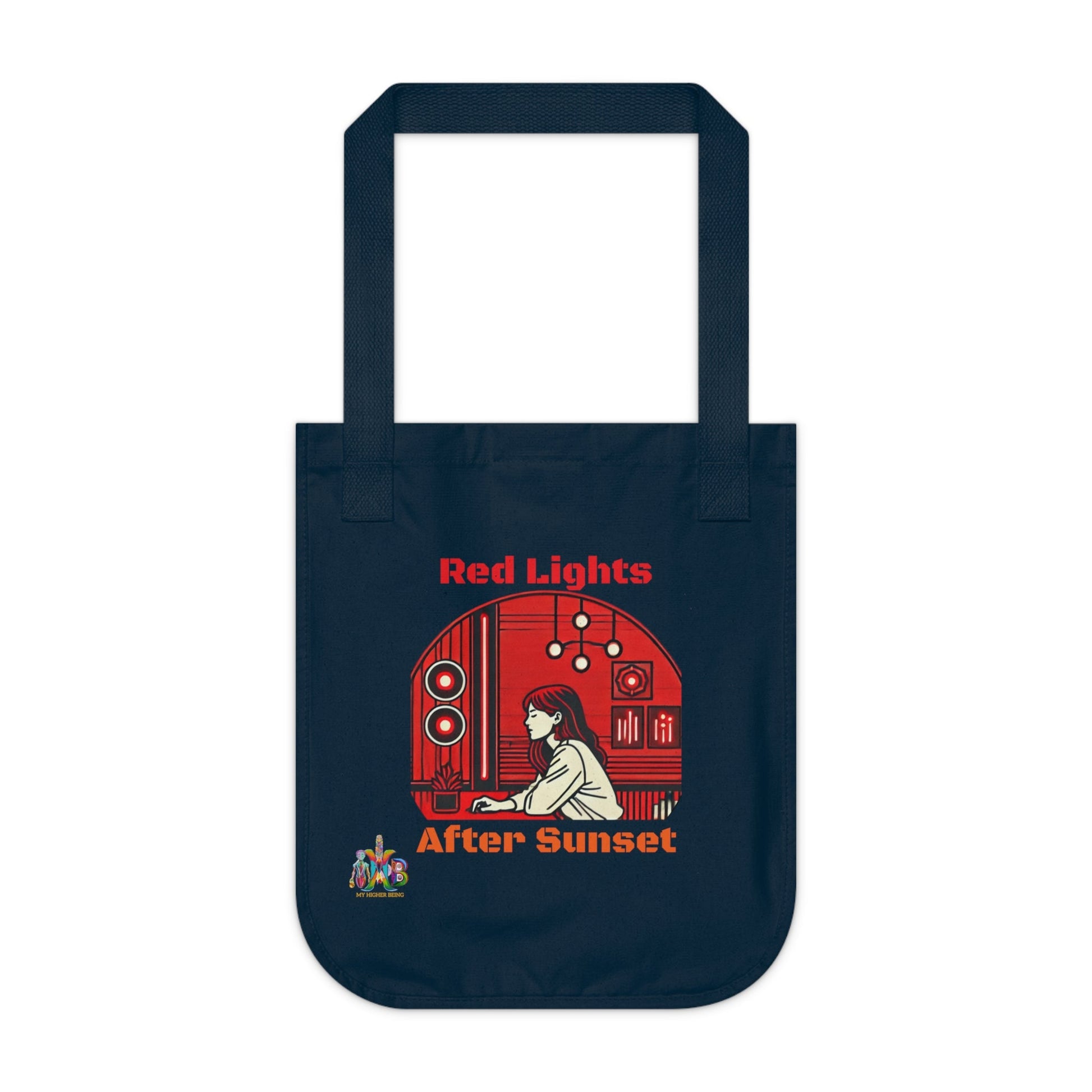 Designed with nature-approved materials, these personalized Econscious EC8040 canvas tote bags come with a 100% certified-organic cotton body and web handles. At My Higher Being, we believe in the transformative power of daily habits. This tote bag promotes the use of red lights in the evening. Perfect for health-conscious individuals looking to regulate their circadian rhythm and reduce eye strain. Ideal for those interested in creating a healthier sleep-wake cycle and enhancing their sleep quality. Relevant for bedtime routines, wellness practices, and self-care rituals. The open main compartment adds daily function with its easy-access, while the Econscious tag on the handle base is a discreet nod to this personalized tote bag being a green choice.